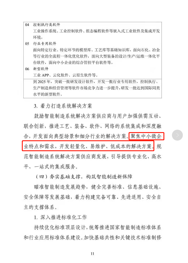 4月14日,工業(yè)和信息化部公開(kāi)對(duì)《“十四五”智能制造發(fā)展規(guī)劃》征求意見(jiàn)。征求意見(jiàn)稿提出,智能制造發(fā)展水平關(guān)乎我國(guó)未來(lái)制造業(yè)的全球地位,對(duì)于加快發(fā)展現(xiàn)代產(chǎn)業(yè)體系,鞏固壯大實(shí)體經(jīng)濟(jì)根基,構(gòu)建新發(fā)展格局,建設(shè)數(shù)字中國(guó)具有重要作用。目前工信部倡導(dǎo)的方向:聚焦中小微企業(yè)特點(diǎn)和需求,開(kāi)發(fā)輕量化、易維護(hù)、低成本的解決方案。